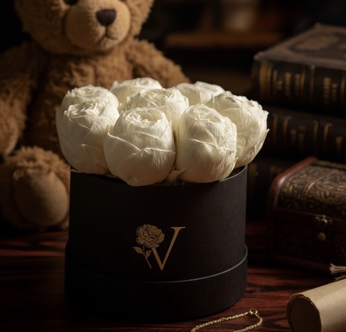 Éternelle Box | 8 Peonías es una pieza para quienes aman la opulencia discreta: volumen generoso, textura rica y una presencia que se nota sin necesidad de brillos ni estridencias.